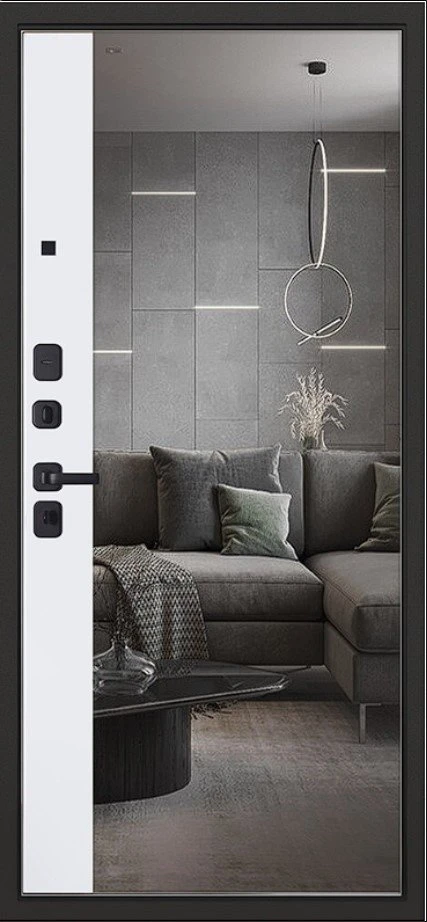 Надежная входная Дверь Scandi с зеркалом премиум класса по цене 45 119 руб. Большая толщина стали защитит от проникновения в ваш дом, квартиру или коттедж. Используется очень качественная фурнитура: замки, цилиндры, ручки, защелки. Покрытие и отделка двери изготовлено под внимательным контролем производителя. Дверь имеет долгий срок службы и гарантию.